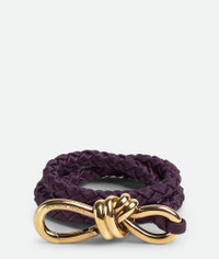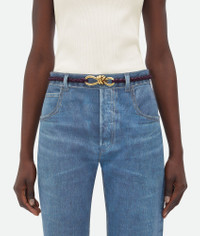 Intreccio nappa elastic belt with knot detail Product details • Metal closure Material: 100% Lambskin • Lining: Unlined • Color: Dark Mystic • Hardware: Muse brass finish • Height: 0.9 cm | 0.4" • Depth: 0.5 cm | 2.1" Made in: Italy