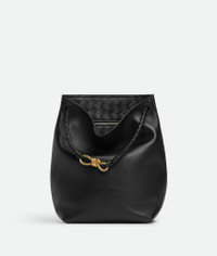 Product Details - Silky calfskin bucket bag with sliding shoulder strap - Intrecciato leather internal pocket - Adjustable and detachable cross-body strap - Lining: Calf leather - Color: Black - Hardware: Brass finish - Made in: Italy - Product code: 844169V4O921019 Material - Material: Calfskin Size & Fit - Height: 34 cm | 13.4" - Width: 24 cm | 9.4" - Depth: 12 cm | 4.7 - Strap drop: 41 cm | 16.1"