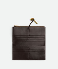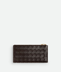 Long wallet in Intrecciato nappa leather with signature knot closure. Product Details - Intrecciato nappa leather wallet - Twelve card slots, two additional pockets, one zipped long coin purse - Metallic knot closure - Material: Lambskin - Lining: Calf leather - Color: Fondant - Hardware: Muse brass finish - Height: 9.5 cm | 3.7" - Width: 19 cm | 7.5" - Depth: 0.5 cm | 0.2" - Made in: Italy - Product code: 836944VCPP22190