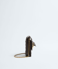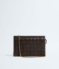 Pouch in Intrecciato nappa leather with signature knot closure and metal chain. Product Details - Intrecciato nappa leather pouch - One main compartment, two card slots - Metal knot closure - Metal chain - Colour: Fondant - Hardware: Muse Brass finish - Lining: Calfskin - Made in: Italy - Product code: 844107VCPP22190 Material - Material: lambskin Size & Fit - Height: 12.5 cm | 4.7" - Width: 19 cm | 7.5" - Depth: 4 cm | 1.6" - Strap drop: 57 cm | 22.4" - Fits iPhone 17 Pro Max, a credit card case, airpods and keys.