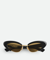 Cat eye sunglasses in acetate. Product Details - Cat eye sunglasses made from Eastman Acetate Renew with 27% recycled material - Lenses made from polyamide with 39% bio-based content - BV1387S 001 - Material: Acetate - Color: Black/Yellow - Made in: Japan - Product code: 821457V2Q301004