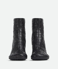 Ankle boot realised in lambskin leather with Intrecciato craftsmanship. Product Details - Intrecciato leather ankle boot - Back zip closure - Material: lambskin - Lining: Lambskin - Color: Black - Lugged rubber outsole - Heel: 7.5 cm | 3” - Made in: Italy - Product code: 811087V2ED01000