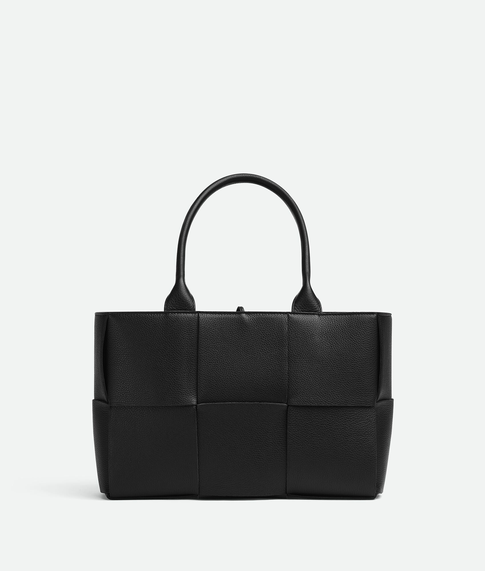 • Small intreccio grained leather tote bag • Single detachable interior zipped pocket • Leather string closure Material: 100% Calfskin • Lining: Bonded suede Intreccio • Color: Black • Hardware: Gold finish • Height: 20 cm | 7.8" • Width: 30 cm | 11.8" • Depth: 11.5 cm | 4.5" • Handle drop: 15 cm | 6" Made in: Italy