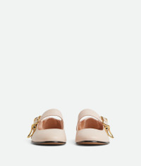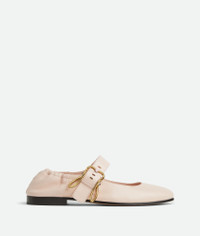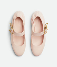 Leather Mary-Jane ballerina featuring a rabbit shaped buckle and Intrecciato detail Product Details - Leather Mary-Jane ballerina - Rabbit shaped buckle closure - Material: Calfskin - Lining: Lambskin - Color: New Cameo - Hardware: Brass finish - Leather outsole - Made in: Italy - Product code: 829281V5DZ06801