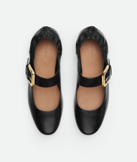 Leather Mary-Jane ballerina with Intrecciato detail on the backstay featuring a buckle Product details • Leather Mary-Jane ballerina Material: Calfskin • Lining: Lambskin • Color: Black • Hardware: Brass finish • Leather outsole Made in: Italy