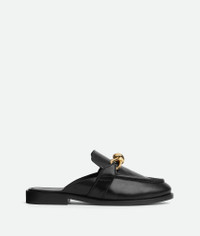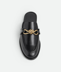 Open-back loafer realised in soft calfskin leather with signature metallic knot detail. Product Details - Leather open-back loafer - Signature metallic knot detail - Material: Calfskin - Lining: Calfskin - Color: Black - Leather outsole - Made in: Italy - Product code: 817519V5DZ01000