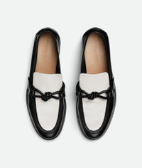 Loafer realised in soft bi-colour calfskin leather with signature knot detail. Product Details - Bi-color leather loafer - Signature leather knot detail - Material: Calfskin - Lining: Calfskin - Color: Black/White - Leather outsole - Made in: Italy - Product code: 796696V5DZ11061