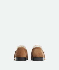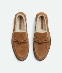 Loafer realised in soft suede with signature knot detail and merino shearling lining. Product Details - Suede loafer - Signature suede knot detail - Merino shearling lining - Lining: Shearling - Color: Caramel/Popcorn - Leather outsole - Made in: Italy - Product code: 843946V3QE37703 Material - Material: Calfskin