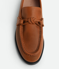 Loafer realised in weathered leather with signature knot detail. Product Details - Weathered leather loafer - Signature leather knot detail - Material: Calfskin - Lining: Calfskin - Color: Light Wood - Leather outsole - Made in: Italy - Product code: 796696V4AF02742