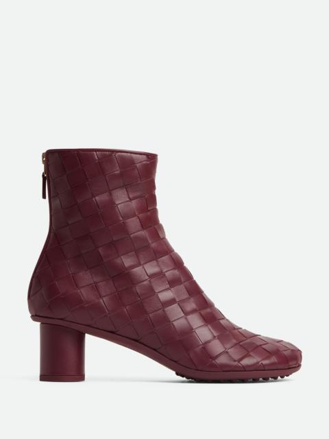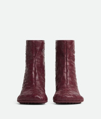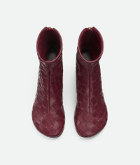 Kitten heel ankle boot realised in lambskin leather with Intrecciato craftsmanship. Product Details - Intrecciato leather kitten-heel ankle boot - Back zipper closure - Lining: Lambskin - Color: Barolo - Lugged rubber outsole - Heel: 5 cm | 2" - Made in: Italy - Product code: 811017V2ED02240 Material - Material: Lambskin