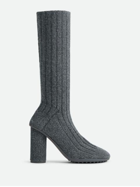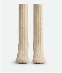 Boot realised in knitted wool with sock effect. Product Details - Knitted wool sock boot - Material: Silk, Wool, Recycled Polyamide - Unlined - Color: Dune Melange - Lugged rubber outsole - Heel: 9 cm | 3.5" - Made in: Italy - Product code: 775456V3V002662