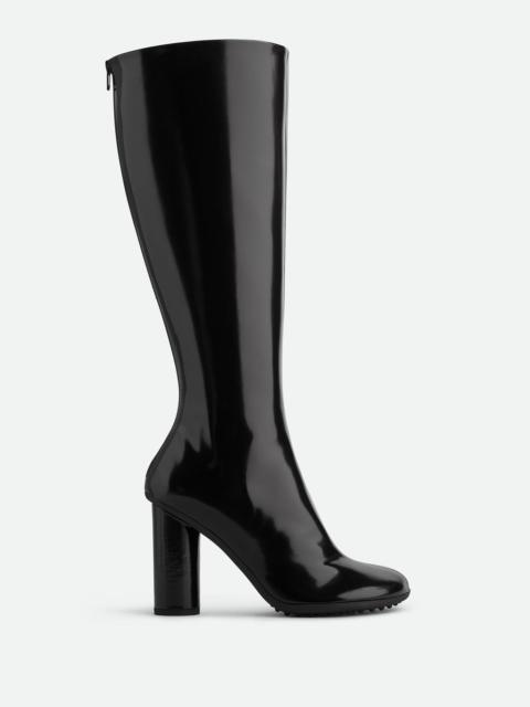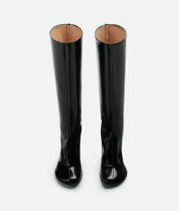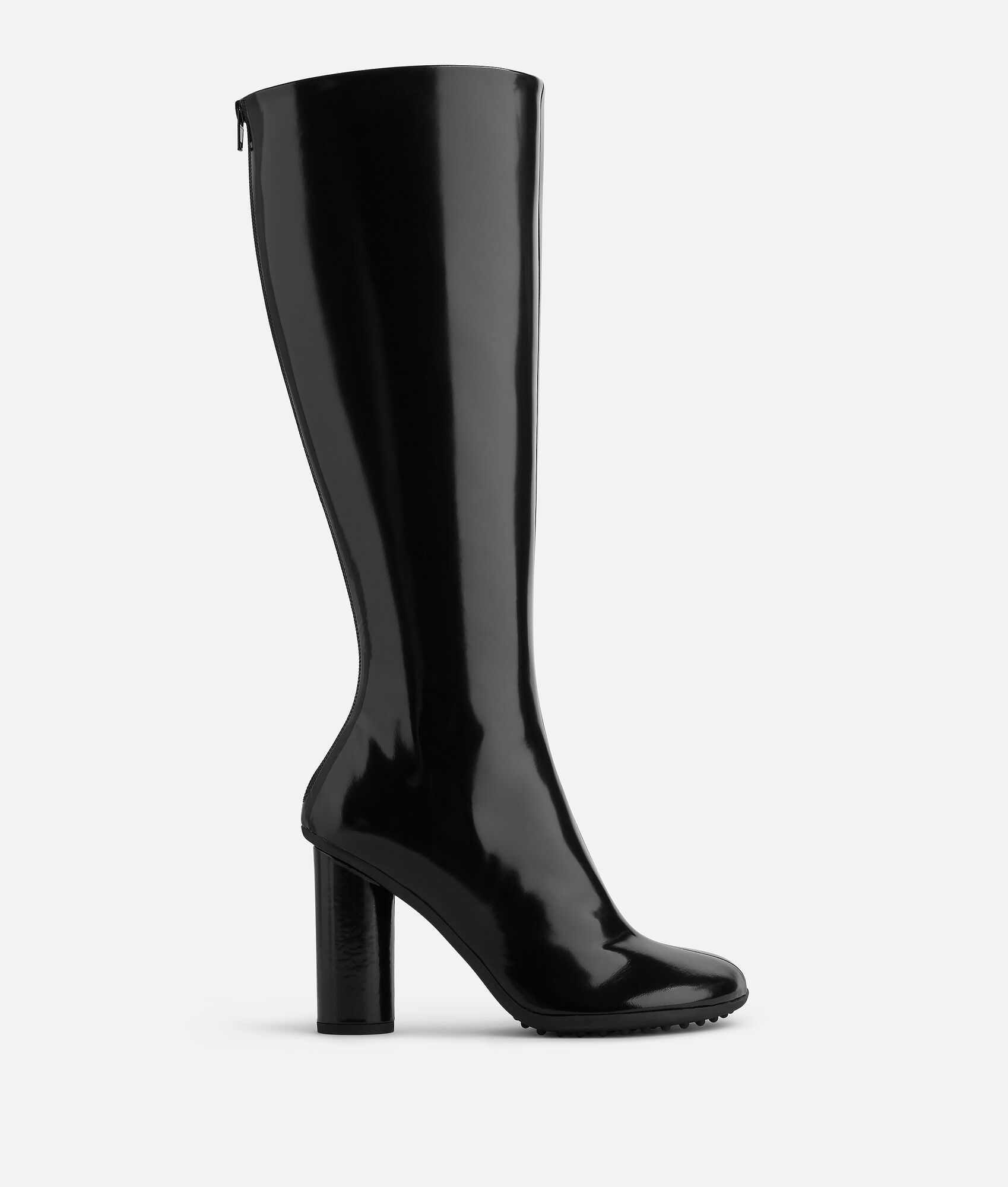 Leather knee-high boots. Product details • Leather knee-high boots Material: 100% Lambskin • Lining: Lambskin • Color: Black • Lugged bio-based rubber outsole • Heel: 9 cm | 3.5" Made in: Italy