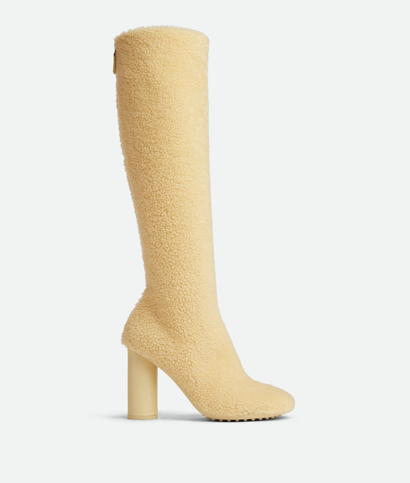 Shearling knee-high boots. Product details • Shearling knee-high boots Material: 100% Lambskin • Lining: Lambskin • Color: Beige • Lugged bio-based rubber outsole • Heel: 9 cm | 3.5" Made in: Italy