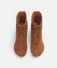 Ankle boot realised in soft suede with Intrecciato craftsmanship. Product Details - Intrecciato suede ankle boot - Back zip closure - Material: suede calfskin - Lining: Calfskin - Color: Caramel - Lugged rubber outsole - Heel: 7.5 cm | 3” - Made in: Italy - Product code: 811087V4JC07665