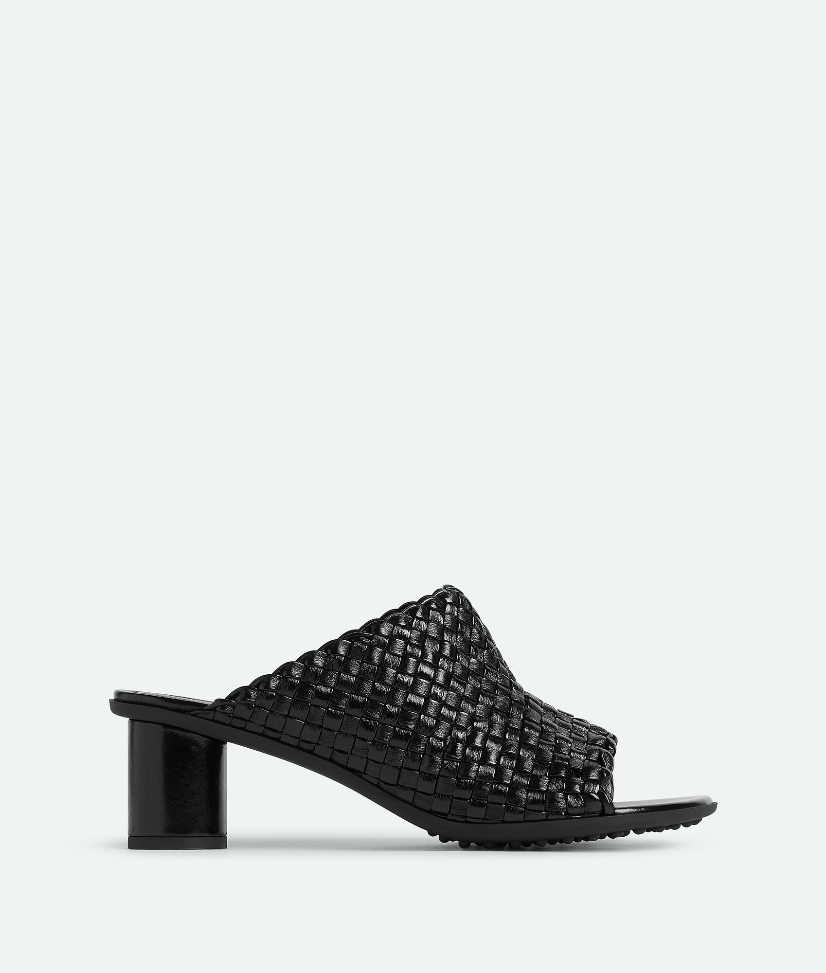 Calfskin leather mule sandal with Intreccio craftsmanship. Product details • Intreccio leather mule Material: Calfskin • Unlined • Color: Black • Lugged rubber outsole • Heel: 5 cm | 2” Made in: Italy