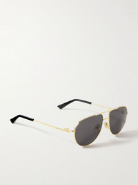 Bottega Veneta Eyewear's sunglasses are designed in a classic aviator-style shape that recalls popular silhouettes from the '70s. Made from gold-tone metal, they're updated with angled frames and uneven temples and have dark-grey lenses that complement the acetate tips. Details & Care - Gold-tone metal - Come with a case - 100% UV protection