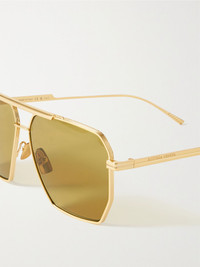 A modern take on vintage aviator styles, Bottega Veneta Eyewear's sunglasses are designed with sleek hexagonal lenses. They're made from polished gold-tone metal and have slim logo-engraved arms and comfortable nose pads. Details & Care - Gold-tone metal - Come with a case - 100% UV protection