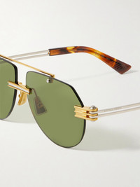Bottega Veneta Eyewear's sunglasses are made from a combination of gold- and silver-tone metal contrasted by tortoiseshell acetate tips, so they'll go with nearly anything. They have retro, aviator-style frames and geometric nose pads for a comfortable fit. Details & Care - Gold and silver-tone metal - Come with a case - 100% UV protection