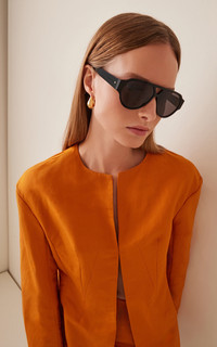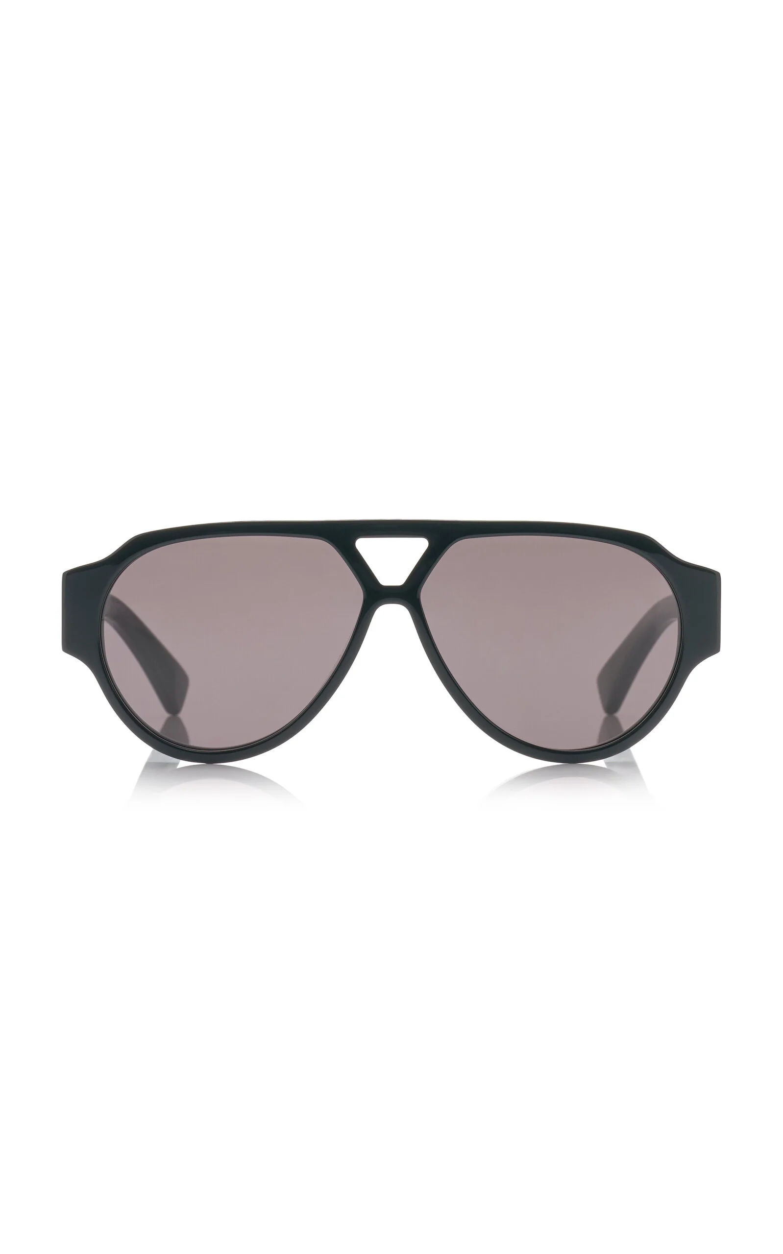Bottega Veneta's eyewear collection reimagines iconic silhouettes in bold new volumes. Made in Italy from glossy acetate, these sunglasses have aviator frames with gold-tone triangle hardware at the temples that nods to house codes. Store them in the accompanying case to keep them scuff-free. PRODUCT DETAILS - Composition: acetate - 100% UVA/UVB protection - Made in Italy