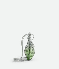 Cross-body bag in Intrecciato laminated degrade leather with sculptural metallic Product Details - Mini Intrecciato laminated degrade leather cross-body bag with metallic top handle - Single compartment - Magnetic closure - The metallic handle is crafted by artisans and showcases nuances and engraved markings making each piece unique - Material: Goatskin - Lining: Lambskin bonded Intrecciato - Color: Fresh mint/Silver - Hardware: Brass finish - Height: 12cm - Width: 20cm - Depth: 2.5cm - Handle drop: 5 cm | 2” - Strap drop: 60 cm | 23.6" - Made in: Italy - Product code: 804496V5LA08119 Size & Fit - Fits iPhone 16 Pro Max, a credit card case, airpods and keys.