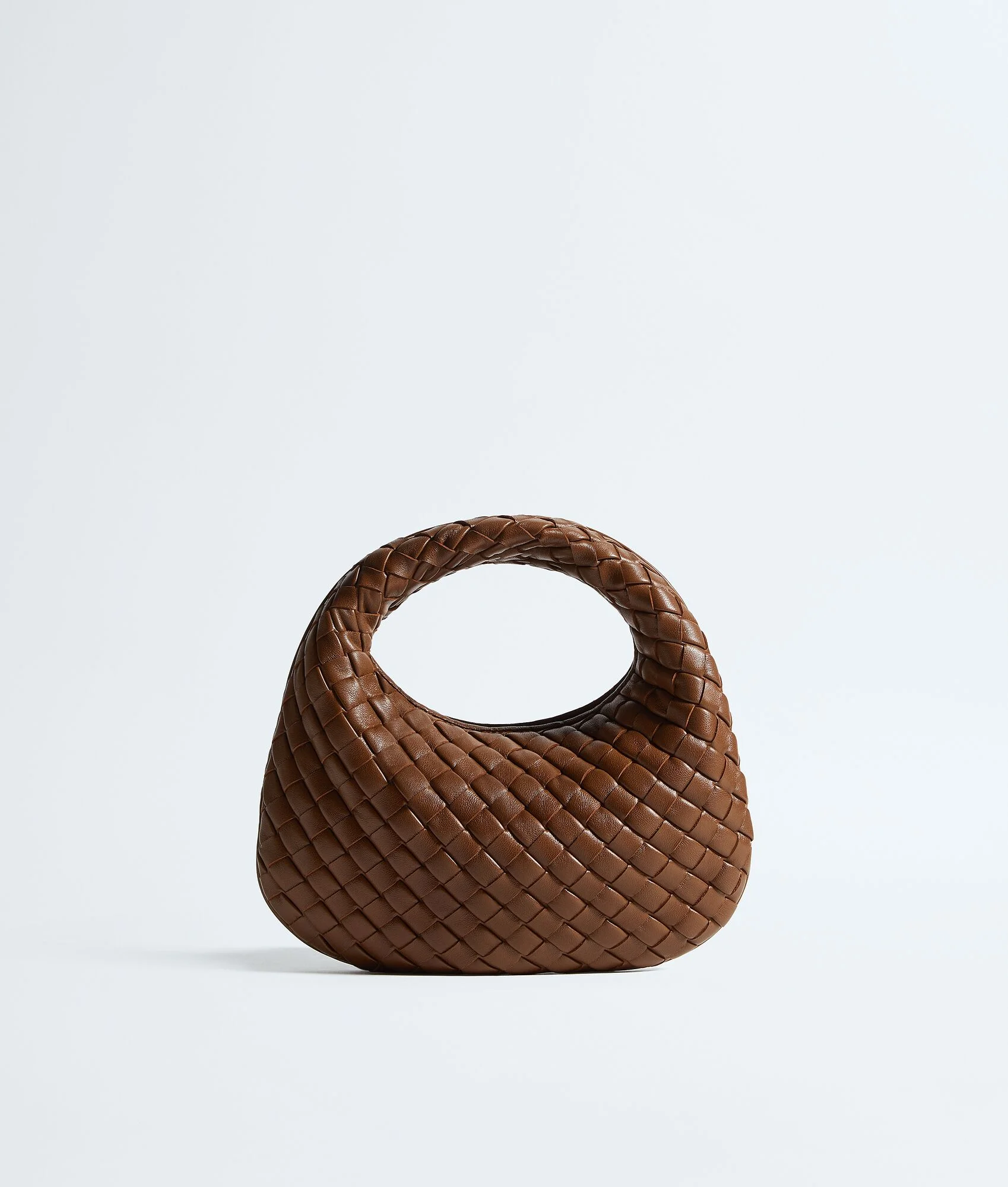 Top handle bag with seamless Intrecciato craftsmanship in padded, supple leather. Product Details - Baby padded Intrecciato supple leather top handle bag - One main compartment - Zip closure - Lining: Suede - Color: Nocciola - Hardware: Brass finish - Made in: Italy - Product code: 867031V66V02811 Material - Material: lambskin Size & Fit - Height: 26 cm | 10.2" - Width: 15 cm | 5.9" - Depth: 5 cm | 2” - Handle drop: 10 cm | 3.9” - Fits iPhone 17 Pro Max, a credit card case and keys.