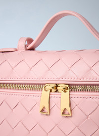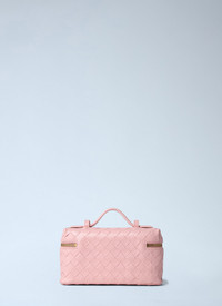 Intrecciato suede leather vanity case with detachable strap. - Detachable and adjustable strap - Top handle - Front zip fastening - One main compartment - Made in Italy - 100% Leather - Color: Pink - Code: 789109 V3IV1 6850