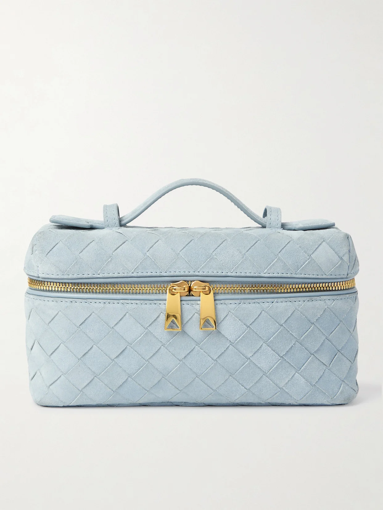 The petite shape of Bottega Veneta's tote makes it the perfect option for evening events. Modeled after a retro vanity case, it's crafted from smooth strips of suede woven together using the brand's signature intrecciato technique. The compact interior has space for your cardholder, phone and lipstick. Lower-Impact Materials. This product is made using at least 50% lower-impact materials or ingredients. Find out more about our NET SUSTAIN criteria here.