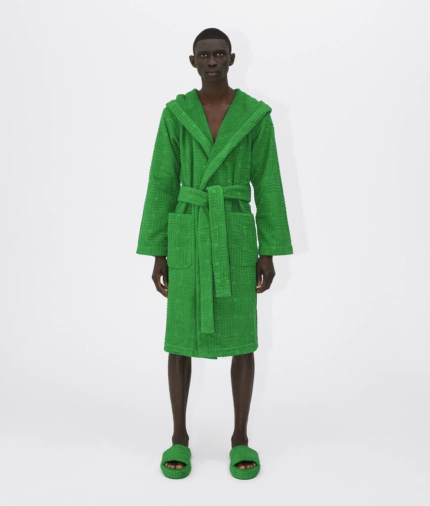 • Intrecciato pattern cotton terry bathrobe • Wide side pockets • Self fabric belt Material: 100% Cotton • Color: Grass Made in: italy