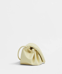 • Medium leather crossbody bag • One interior open pocket • Drawstring and magnetic closure Material: 100% Lambskin Lining: Bonded lambskin Color: Ice Cream Hardware: Silver finish Height: 16 cm Width: 28 cm Depth: 19 cm Strap drop: 50 cm Made in: italy