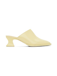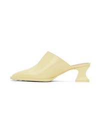Polished calfskin mules in beige. · Cutout at vamp · Logo-embossed buffed lambskin footbed · Covered modified kitten heel with rubber injection · Leather sole with rubber injection · Heel: H2" Supplier color: Camomile Upper: calfskin. Sole: leather, rubber. Made in Italy 241798F122009