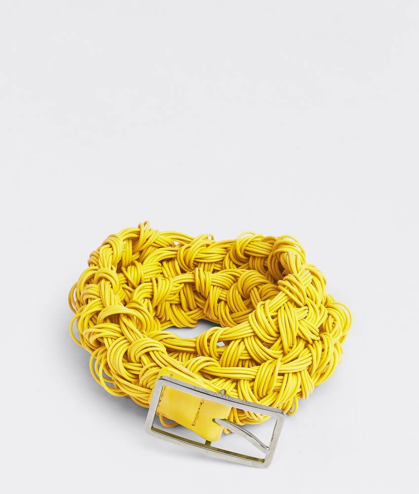 • Rubber crochet belt • Buckle closure Material: 100% Lambskin • Unlined • Color: Lemon • Hardware: Silver finish • Height: 2.5 cm | 1" • Depth: 0.5 cm | 0.2" Made in: italy