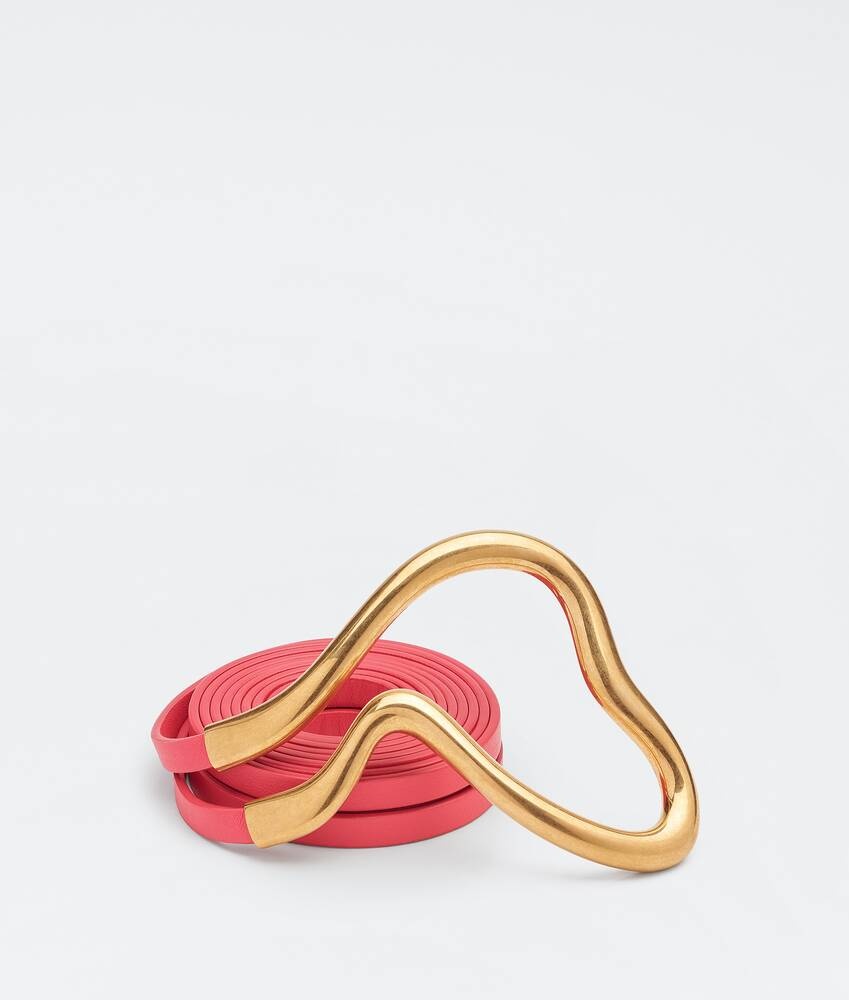 • Leather double strap belt • Knot closure Material: 100% Calfskin Lining: Calf leather Color: Lollipop Hardware: Gold finish Height: 1.4 cm Depth: 0.5 cm Made in: italy