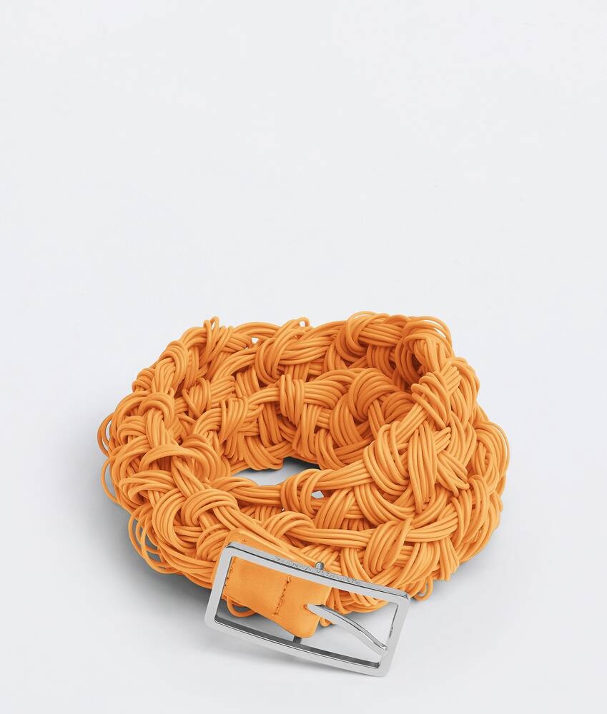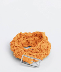 • Rubber crochet belt • Buckle closure Material: 100% Lambskin • Unlined • Color: Tangerine • Hardware: Silver finish • Height: 2.5 cm | 1" • Depth: 0.5 cm | 0.2" Made in: italy