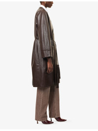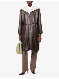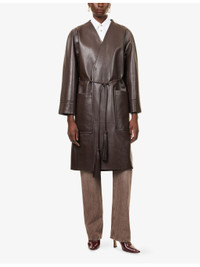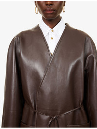 PRODUCT DETAILS - Bottega Veneta leather coat - 100% nappa leather; lining 100% virgin wool - Self-tie fastenings at front - Oversized fit, V-neck, dropped shoulders, long sleeves, wrapover front, tassel-trim waist tie, two large front patch pockets, central rear slit, fully lined - Specialist leather clean - Made in Italy - True to size - Size small: length 41in / 104cm - Model is 5ft 10in/1.78m and wears a size small - Midweight, non-stretch Ref: R04508472