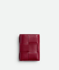 Intreccio nappa leather wallet. Make it unique with a handmade customization Product Details - Six card slots, one note compartment, two additional pockets, one zipped coin purse - Press stud closure - Material: lambskin, calfskin - Lining: Calfskin - Color: Dark Red/Bliss Washed - Hardware: Gold finish - Height: 9 cm | 16.9" - Width: 11.5 cm | 16.9" - Depth: 2 cm | 0.8" - Made in: Italy - Product code: 750245VCQC96342