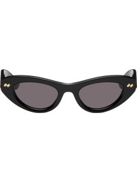 Cat-eye acetate-frame sunglasses in black. · Gray lenses · 100% UVA/UVB protection, category 3 · Integrated nose pads · Inset logo hardware at face and temples · Logo etched at temples · Includes case · Size: 50.21 140 Supplier color: Black Acetate. Made in Italy 252798F005015