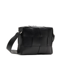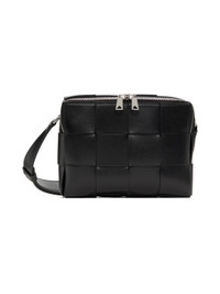 Intreccio-woven buffed calfskin shoulder bag in black. · Adjustable shoulder strap · Two-way zip closure · Bonded buffed calfskin lining · H6 x W8 x D2.25 in Supplier color: Black/Silver Calfskin. Made in Italy 232798F048046