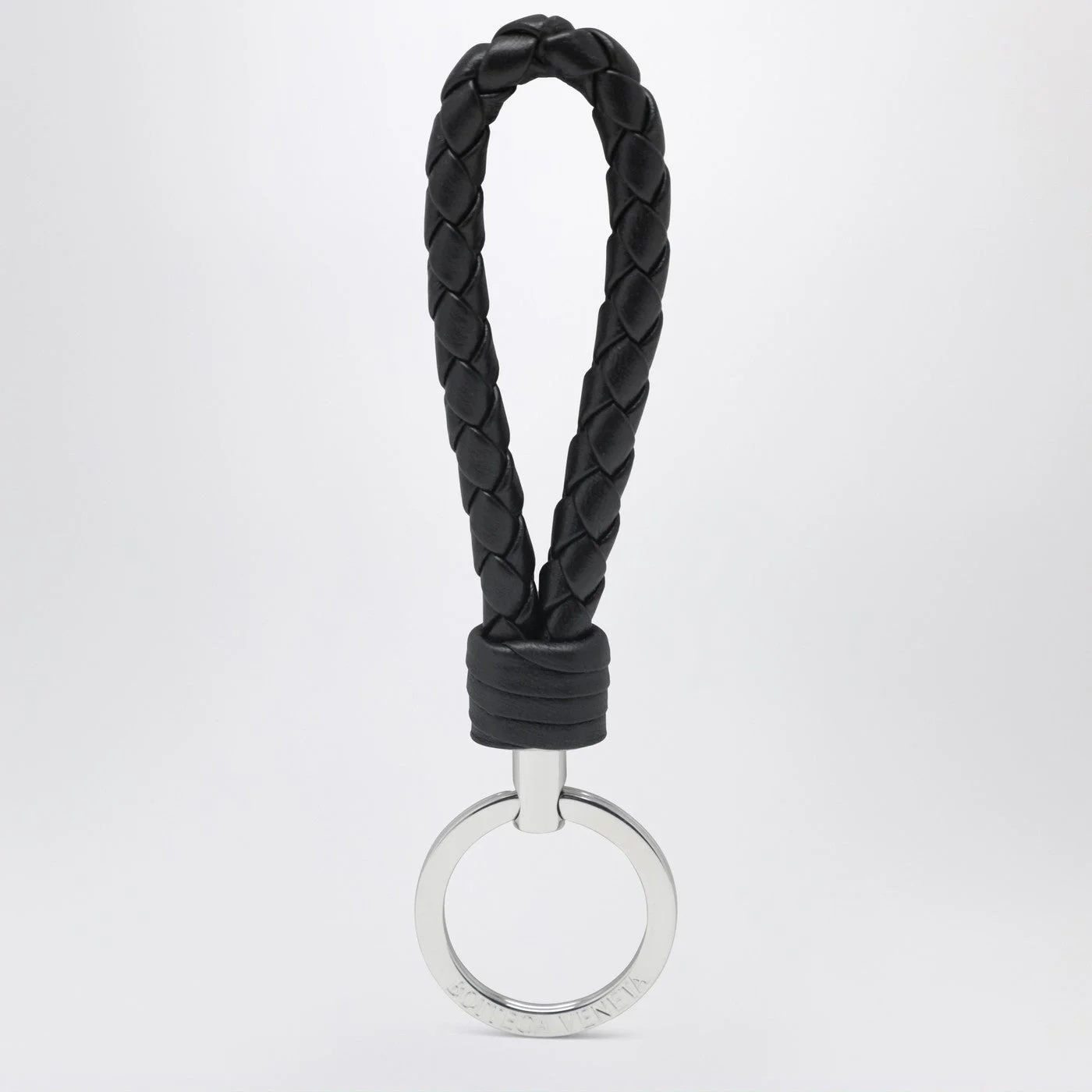 Bottega Veneta black nappa leather key ring with Intrecciato weave and silver-tone metal logo ring.