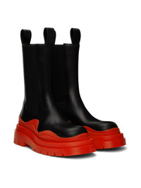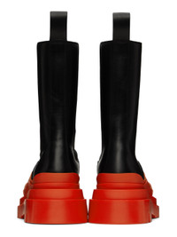 Calf-high vegetable-tanned calfskin Chelsea boots in black and orange. · Elasticized gusset at sides · Pull-loops at collar · Rubberized trim at welt · Treaded rubber platform sole · Platform: H2 in Supplier color: Black Upper: calfskin. Sole: rubber. Made in Italy 222798F114004