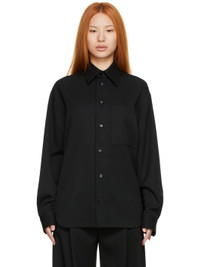 Stretch wool grain de poudre shirt. · Spread collar · Button closure · Patch pocket · Single-button barrel cuffs Supplier color: Black 98% wool, 2% elastane.