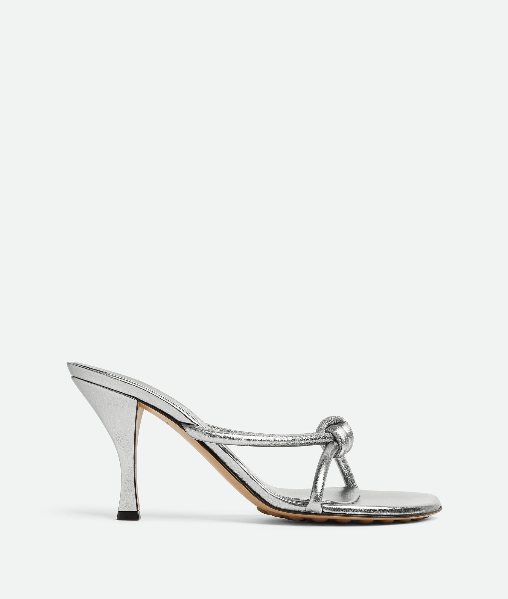 Mule realised in laminated lambskin with interlacing tubular leather straps recalling Product Details - Tubular laminated leather mule - Material: Lambskin - Unlined - Color: Silver - Heel: 8 cm | 3.1" - Made in: Italy - Product code: 775418V3P701414