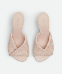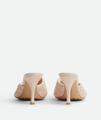 Mule with a folded detail in Intrecciato leather. Product Details - Intrecciato leather mule sandal - Folded detail - Material: Lambskin - Unlined - Color: Cameo - Rubber-injected leather outsole - Heel: 8 cm | 3.1” - Made in: Italy - Product code: 796455V2ED06801