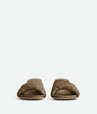 Kitten heel mule with a folded detail in Intrecciato leather. Product Details - Intrecciato leather kitten heel mule sandal - Folded detail - Material: Lambskin - Unlined - Color: Pinecone - Rubber-injected leather outsole - Heel: 5 cm | 2” - Made in: Italy - Product code: 796464V2ED02354