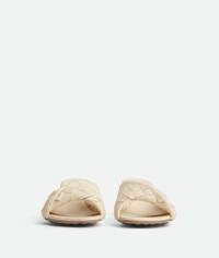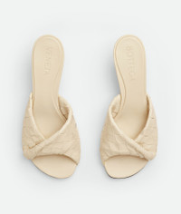 Leather mule with a folded detail in Intrecciato leather. Product Details - Intrecciato leather mule -Folded detail - Material: Lambskin - Unlined - Color: Sea Salt - Rubber-injected leather outsole - Heel: 5 cm | 2" - Made in: Italy - Product code: 796464V2ED09031
