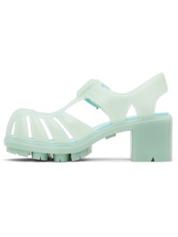 Semi-transparent rubber heeled sandals in blue. · Cutouts at toe and sides · Pin-buckle ankle strap · Logo embossed at footbed · Rubber block heel · Treaded rubber sole · Logo-engraved blue hardware · Heel: H2.75" Supplier color: Zenith Upper: rubber. Sole: rubber. Made in Italy 251798F125007