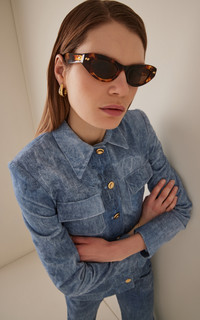 Bottega Veneta's eyewear collection reimagines iconic silhouettes in bold new volumes. PRODUCT DETAILS - Composition: recycled acetate - 100% UVA/ UVB protection - Designer color: Havana/ Brown - Made in Japan
