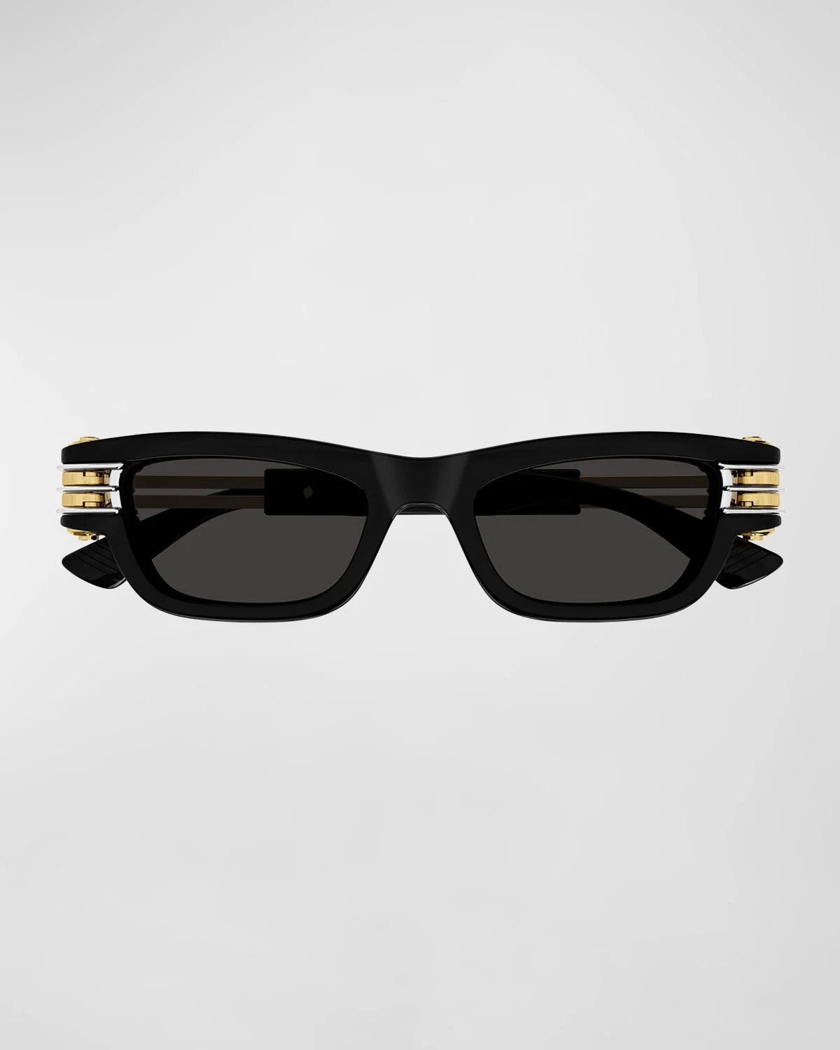 - Bottega Veneta "BV1308S Bolt" rectangle sunglasses in plastic and Amni® nylon - Lens/bridge/temple (in mm): 50-19-145 - Solid lenses - Saddle nose bridge - Ribbon logo on temples; engraved logo - Wide, tapered arms - 100% UVA/UVB protection - Made in Japan - Proposition 65 warning for California residents - This product contains perfluoroalkyl and polyfluoroalkyl substances (PFAS). For more information, please visit the manufacturer’s website.