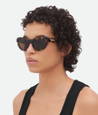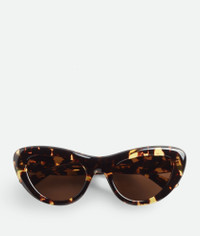 Cat eye sunglasses in recycled acetate. Product Details - Rounded and smooth surfaces on front and temples with a sinuous feel - New curvy metal ribbon screwed on the temples - Bio nylon lenses - BV1282S 002 - Material: Eastman Acetate Renew - Color: Havana/Brown - Made in: Italy - Product code: 791644V2Q302819