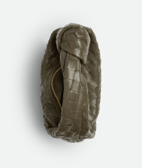 Top handle bag with rounded shape and signature knot in supple Intrecciato leather. Product Details - Mini Intrecciato leather top-handle bag - Single compartment - Zipper closure - Lining: Calf leather - Color: Cypress - Hardware: Gold finish - Height: 10 cm | 3.9” - Width: 28 cm | 11" - Depth: 8.5 cm | 3.3" - Handle drop: 10 cm | 3.9" - Made in: Italy - Product code: 651876VCPP53228 Size & Fit - Fits iPhone 16 Pro Max, a credit card case, airpods and keys.