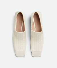 Loafer in brushed leather with Intrecciato detail, squared toe, and sculptural block Product Details - Brushed leather loafer - Intrecciato detail - Material: Calfskin - Lining: Calfskin - Color: Sea Salt - Leather outsole - Heel: 4 cm | 1.6" - Made in: Italy - Product code: 827499V4BO29031